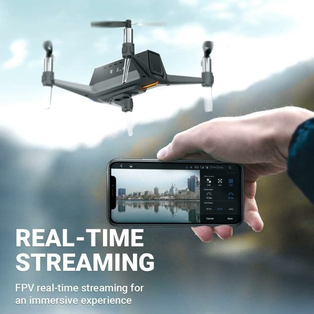 Unlike the previous one, this drone is facilitated with a camera. It provides a flying height of 50 meters and a flying time of 8-10 minutes. It has an upgraded 5G FPV, which enables a more stable signal with faster and real-time transmission. The drone is capable of double GPS positioning and 120-degree wide-angle photography for capturing pictures and videos of a wider landscape. It is also capable of altitude holding and tilting cameras for easier shooting.